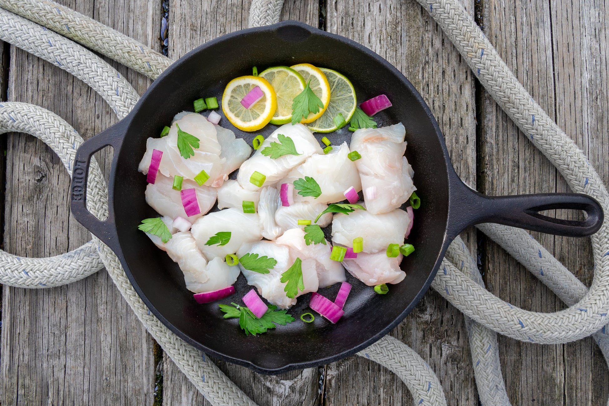 Boneless and skinless Hand-chopped into medium size pieces Beautiful white meat Mild, delicate, sweet flavor with firm texture Lean meat, good source of protein Wild and sustainable, never farmed!