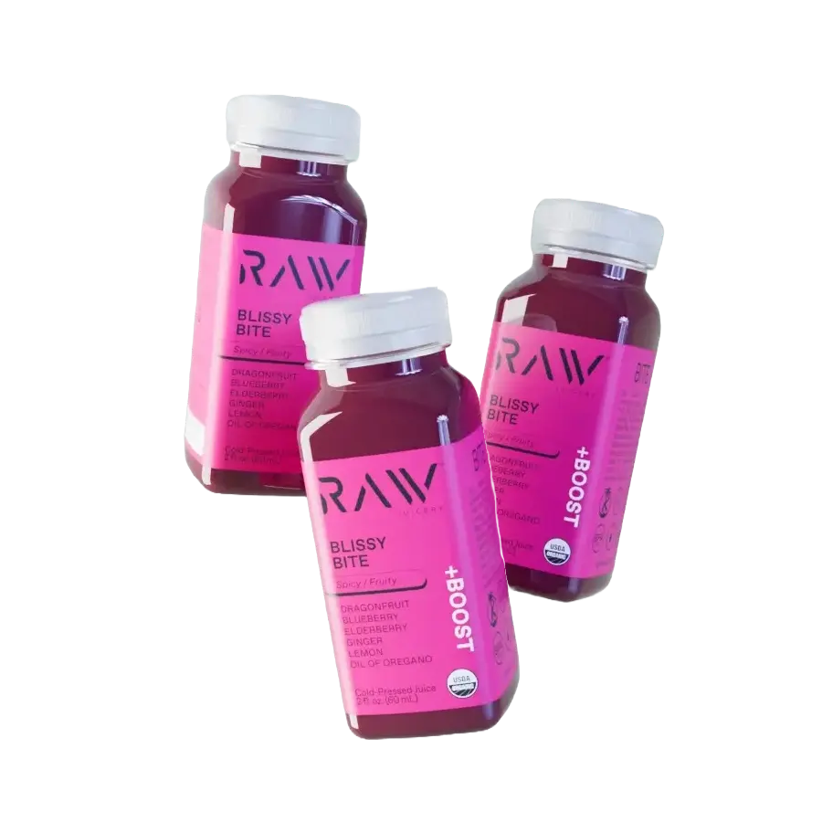 We strived for an immunity-focused formula that hits hard yet still has an inviting, fruity side. Enter Blissy Bite. Dragonfruit and Blueberry draw you in, while Elderberry and Ginger pack that punch. Drop in a healthy dose of Oregano Oil, and trust us, your immune system will thank you later.