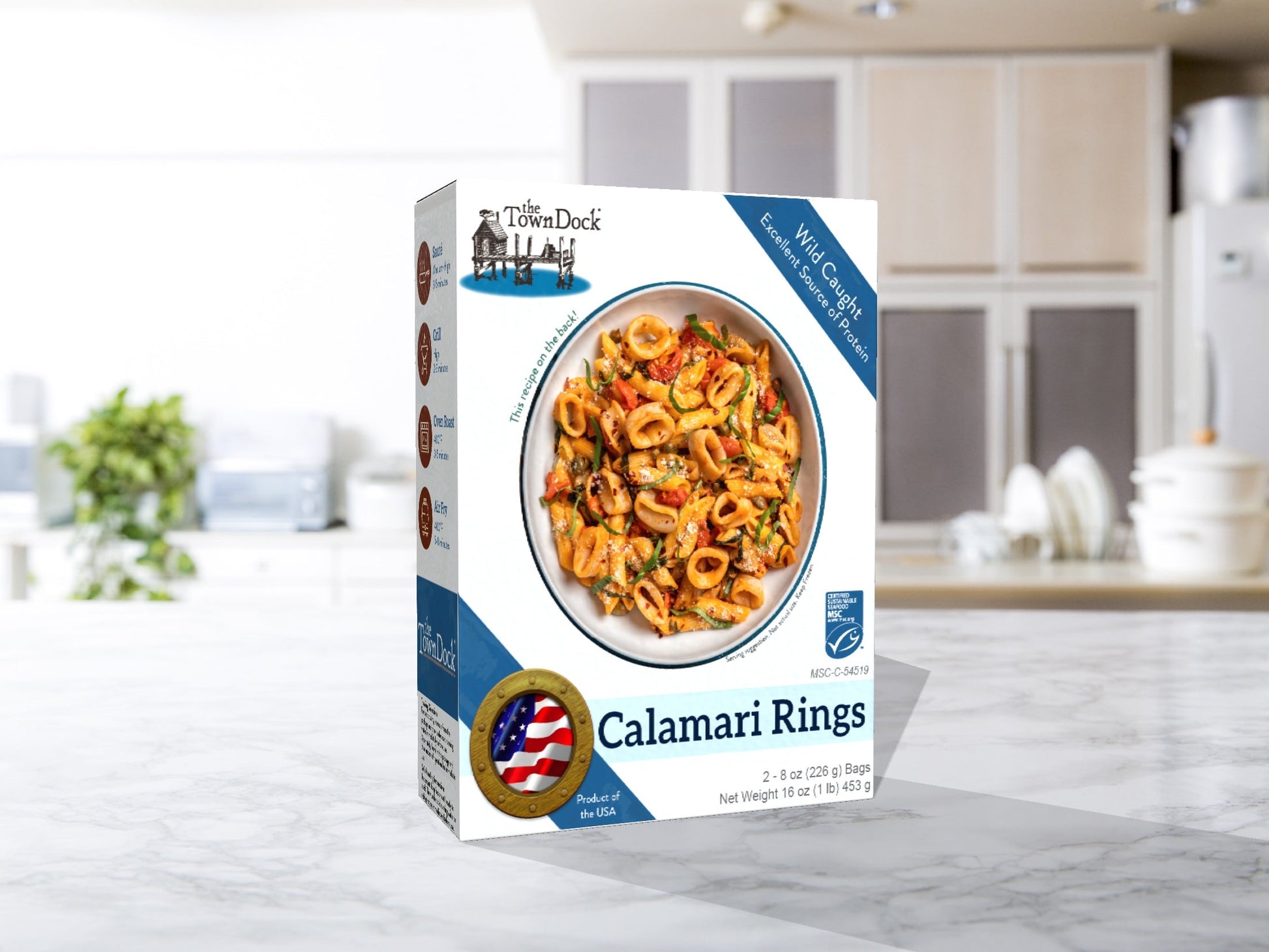 Tender and ready to fry, saute, or bake, our pristine product is coming from a Sustainable Fishery that is wild-caught with the highest standards. The brand is Town Dock, which is one of the old and most respected brands. We ship this product frozen in 8 oz packs so all you have to do is defrost a pack & start cooking. 1 pack can feed a family of 4 for an appetizer nicely.