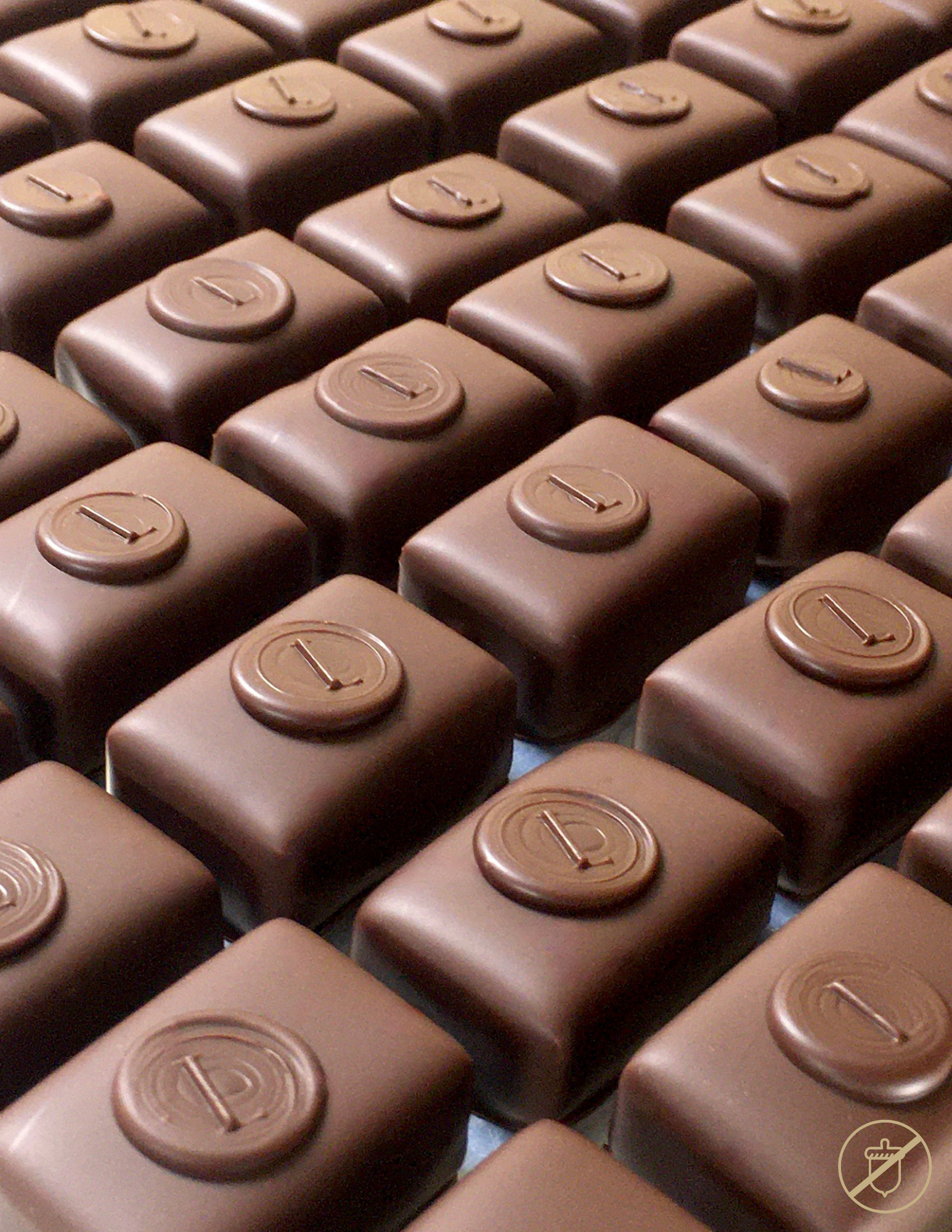 Reminiscent of flavorful Turkish coffee, our 42% organic milk chocolate pavés are blended with organic cream, aromatic cardamom & freshly roasted coffee for a heavenly combination. Enrobed in 64% dark chocolate couverture for an intense flavor contrast. Hand-dipped & hand-stamped with our signature "L" Marque de Maison. A coffee lover's dream!