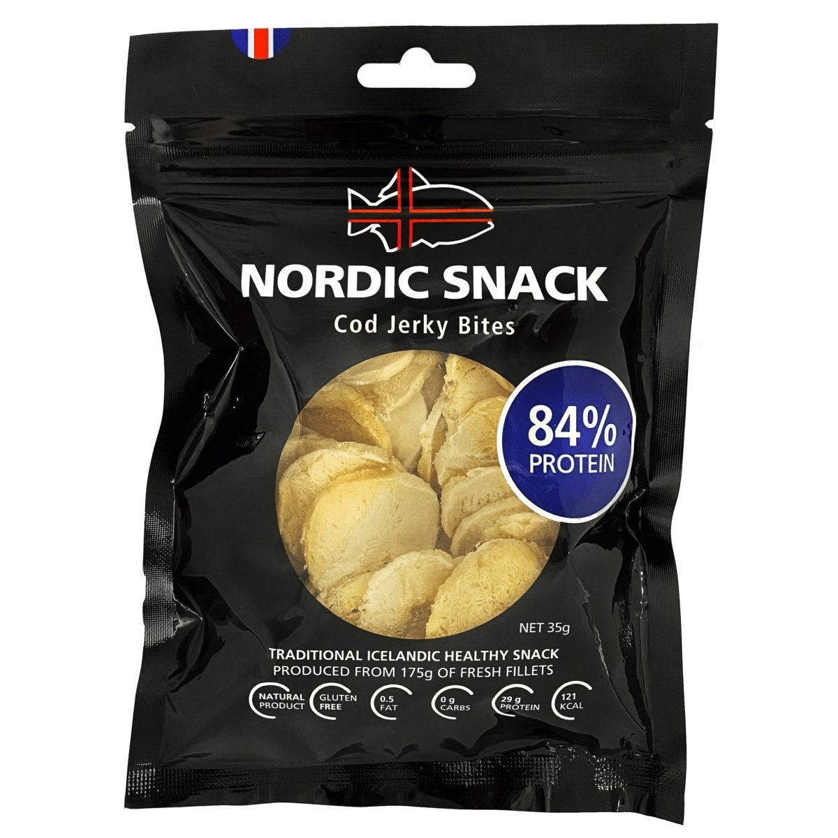 The most popular snack in Iceland! The new & improved form of Harðfiskur! Made from pure cod fillets, freeze dried into perfect bite size pieces. Each bite is packed with protein from a fresh wild-caught Icelandic Cod!