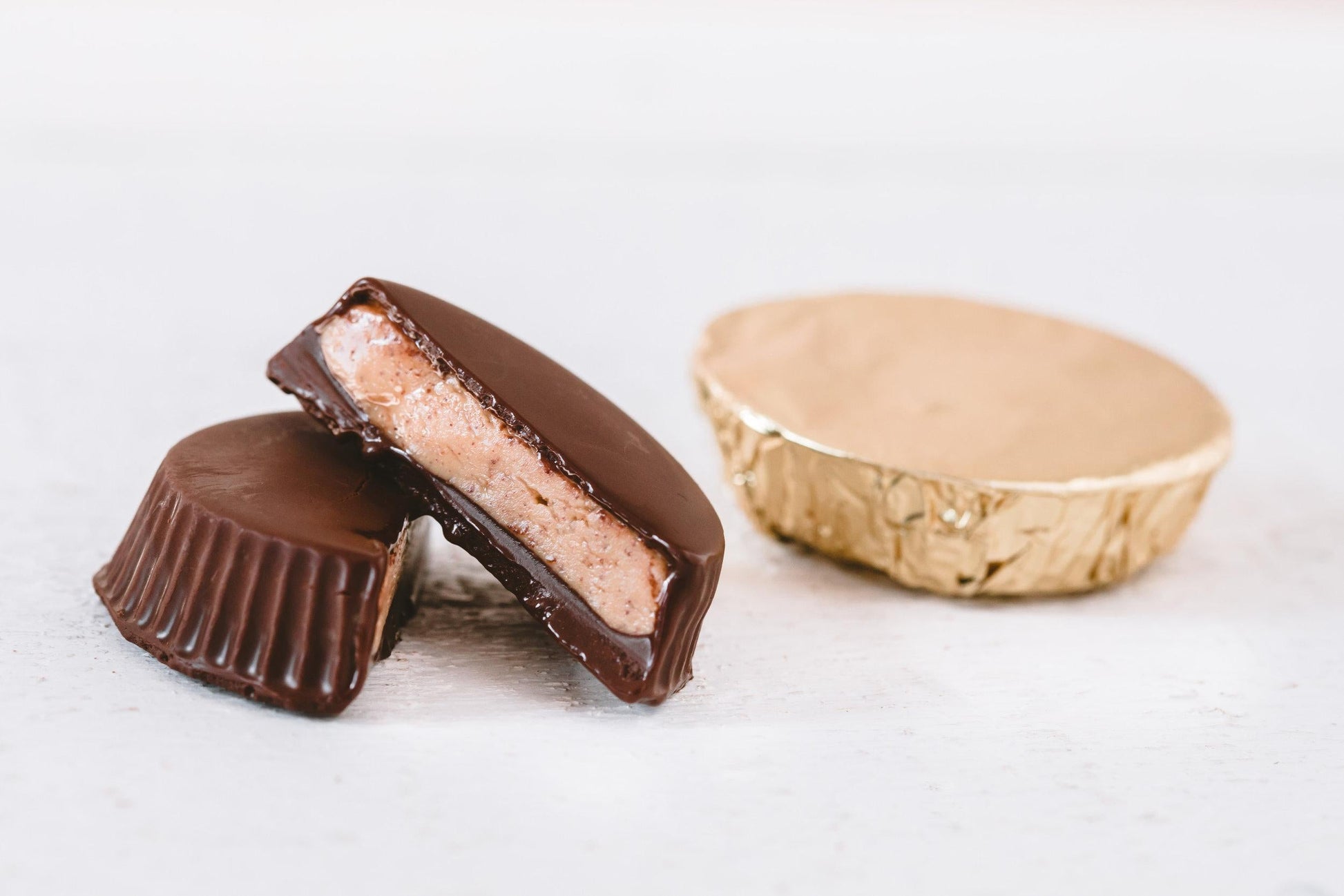 Or as we call them, "I love yous". Organic dark chocolate shells filled with an organic peanut butter center.