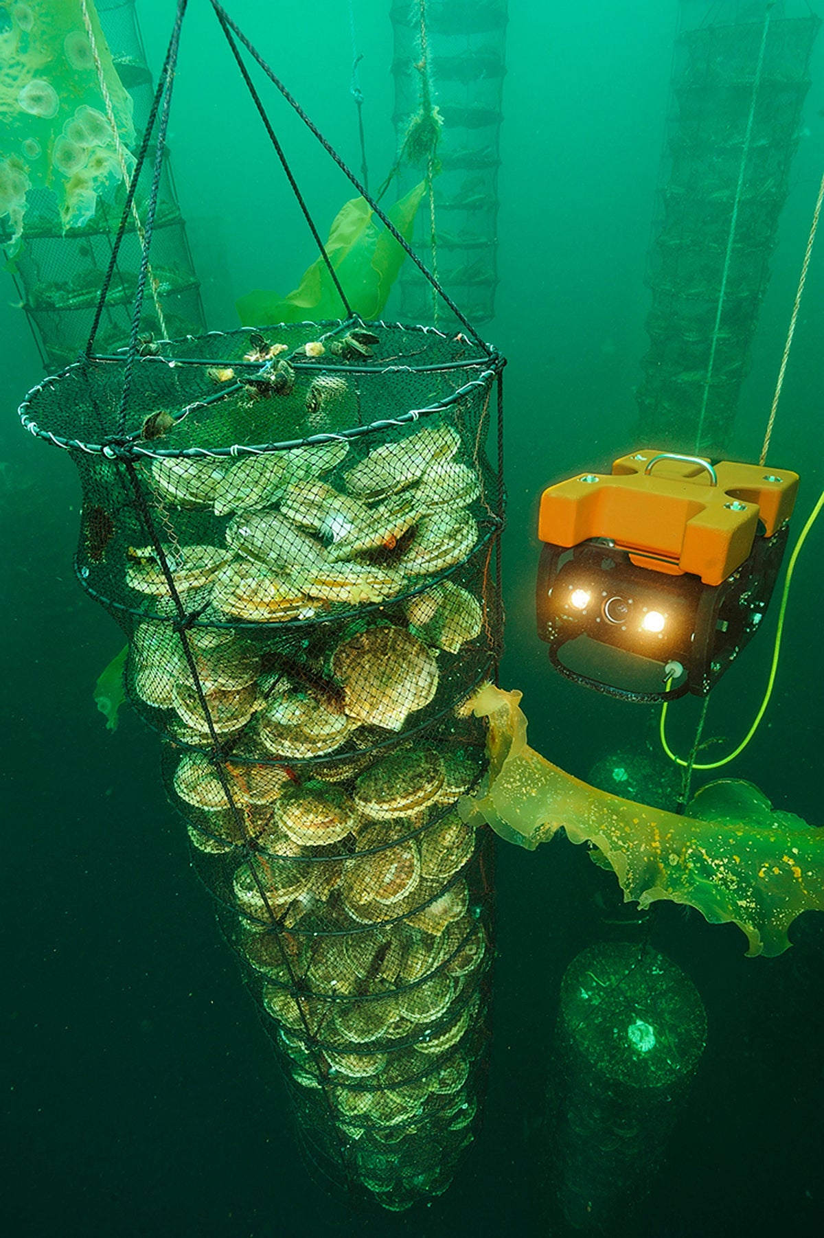 Beyond sustainable: These gourmet umami bites are raised from seed by our partners in Peru (not extracted via destructive bottom trolls), grown to maturity in hanging lantern baskets filtering in the mid water column thus thy are never bottom feeding sandy. The Peruvian Scallop farm is located on an idyllic site that has been used for aquaculture indigenously for over 1,000 years. As scallops grow particulate inorganic carbon in the ocean is sequestered through calcification and the development of carbonate minerals for their shell are formed. Thus not only do our scallops farms require no feed inputs (as they are filter feed plankton & algae), they also directly help to mitigate ocean acidification, and they lantern baskets create a healthy ecosystem for a diversity of species in the ecosystem.