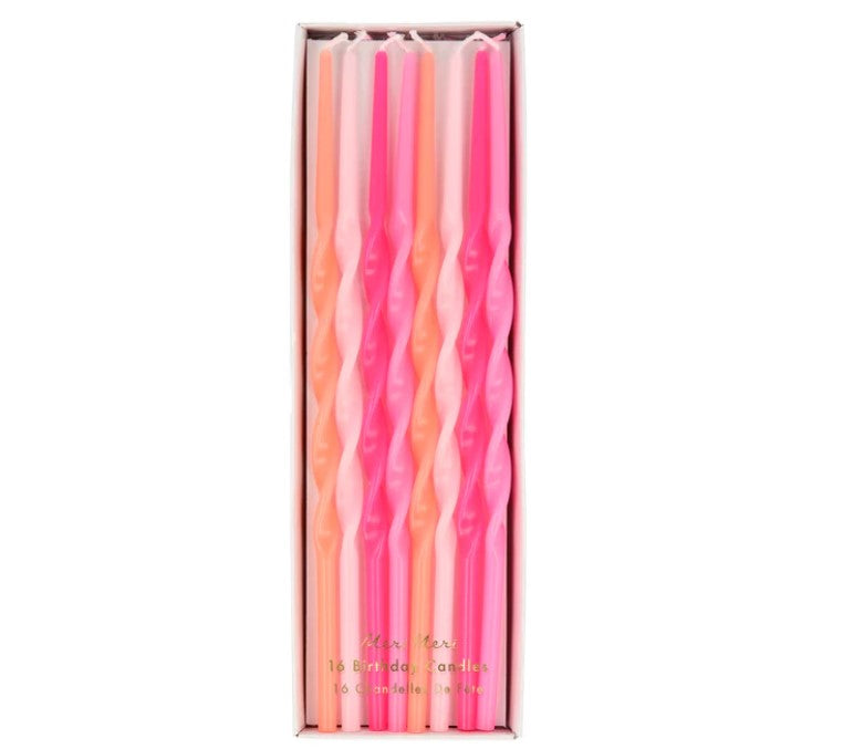These tall candles, in shades of pink, will add a sensational effect to any celebratory cake. They are twisted for a statement look too.