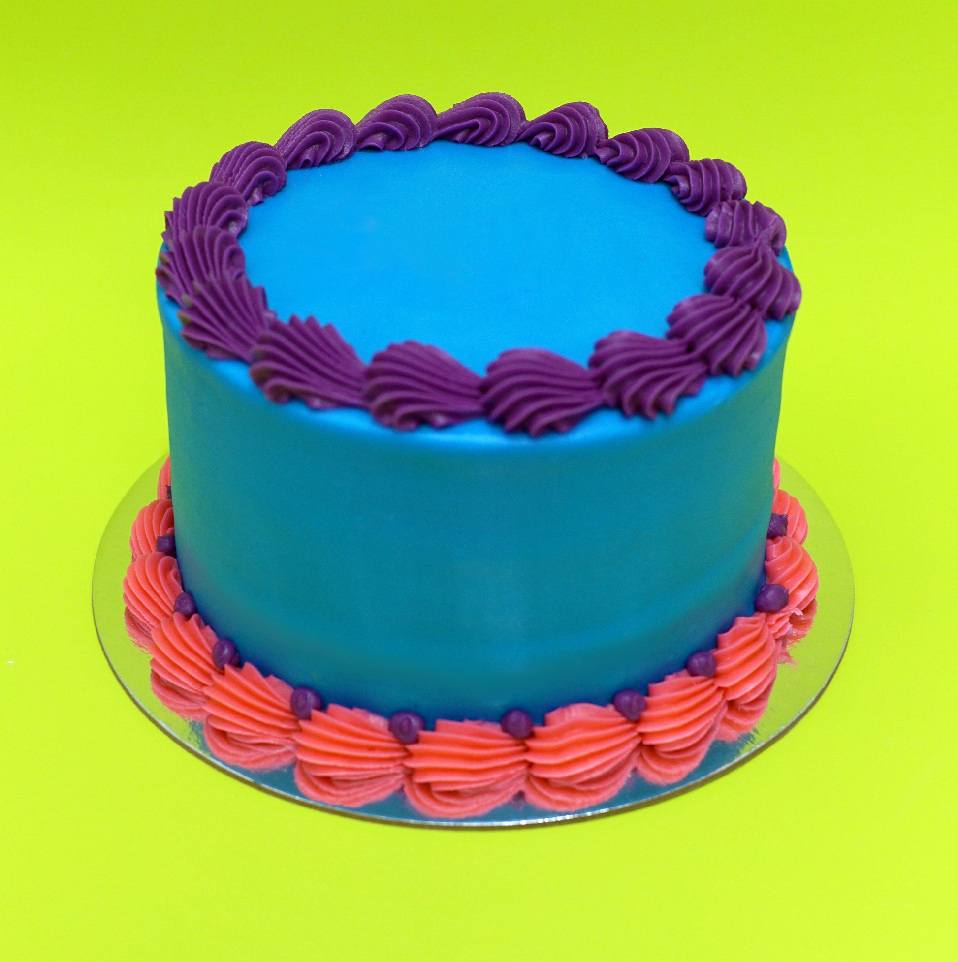- Blue- All frosting in Blue; top piping in Purple; bottom piping in pink; dots on bottom in Purple