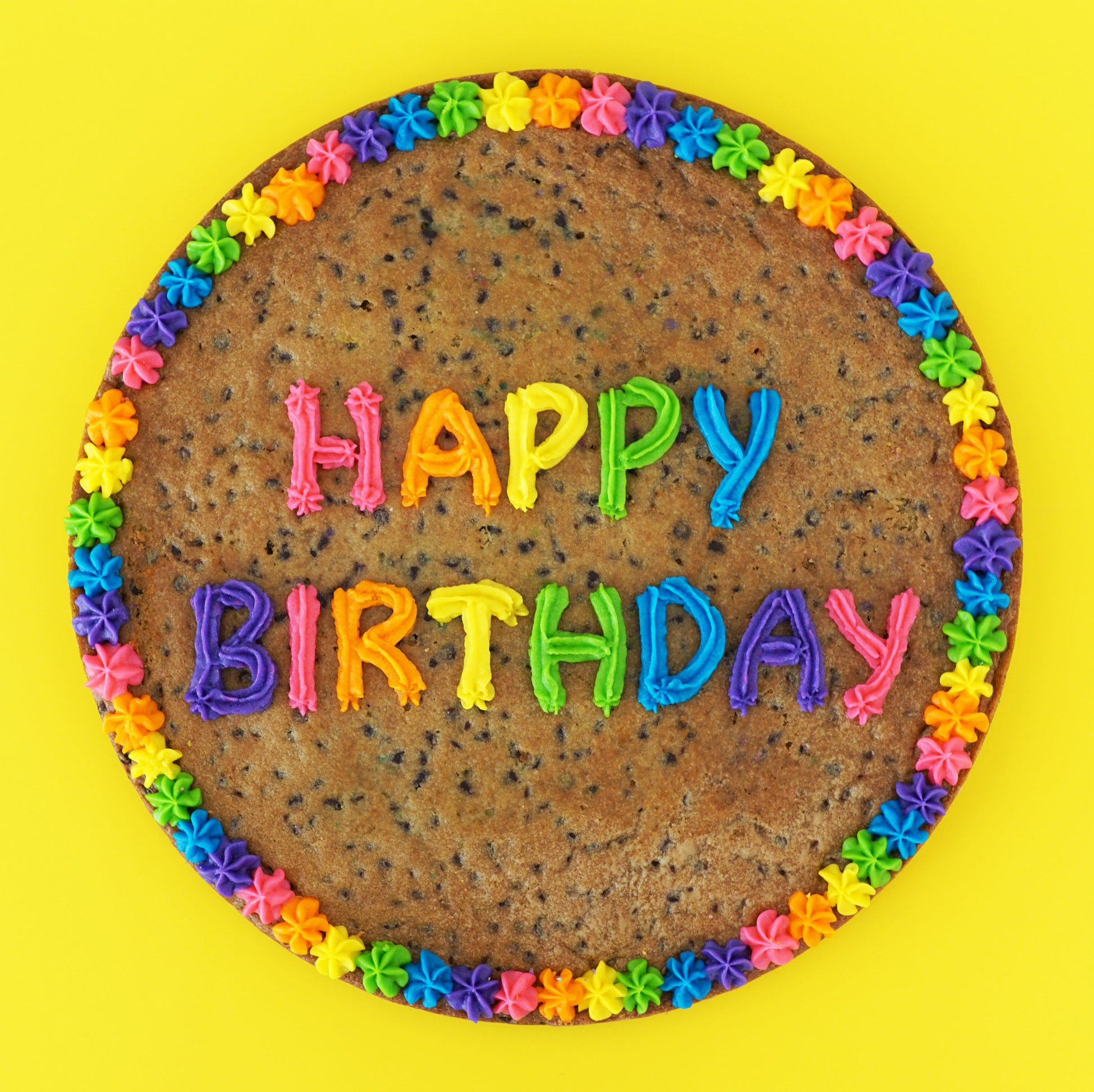 A delicious Cookie Cake made just to celebrate the Birthday Lifestyle! We bake a giant chocolate chip cookie, add butter cream frosting and then toss it into one of our Flour Shop Cookie Boxes to take on the road!