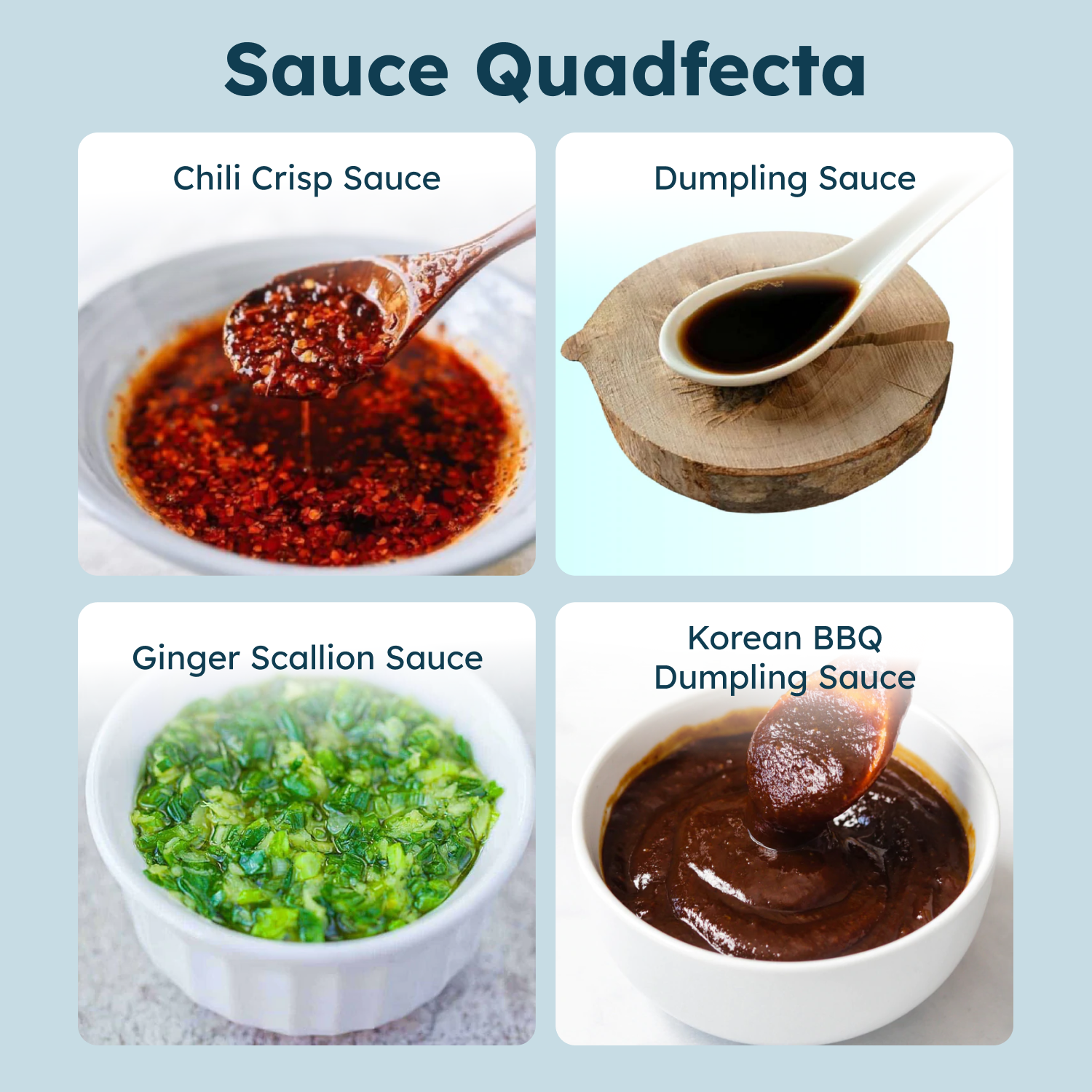 Seafood Sauce Quadfecta (Scallion/Ginger, Chili Crisp, Dumpling Sauce, Korean BBQ Sauce)